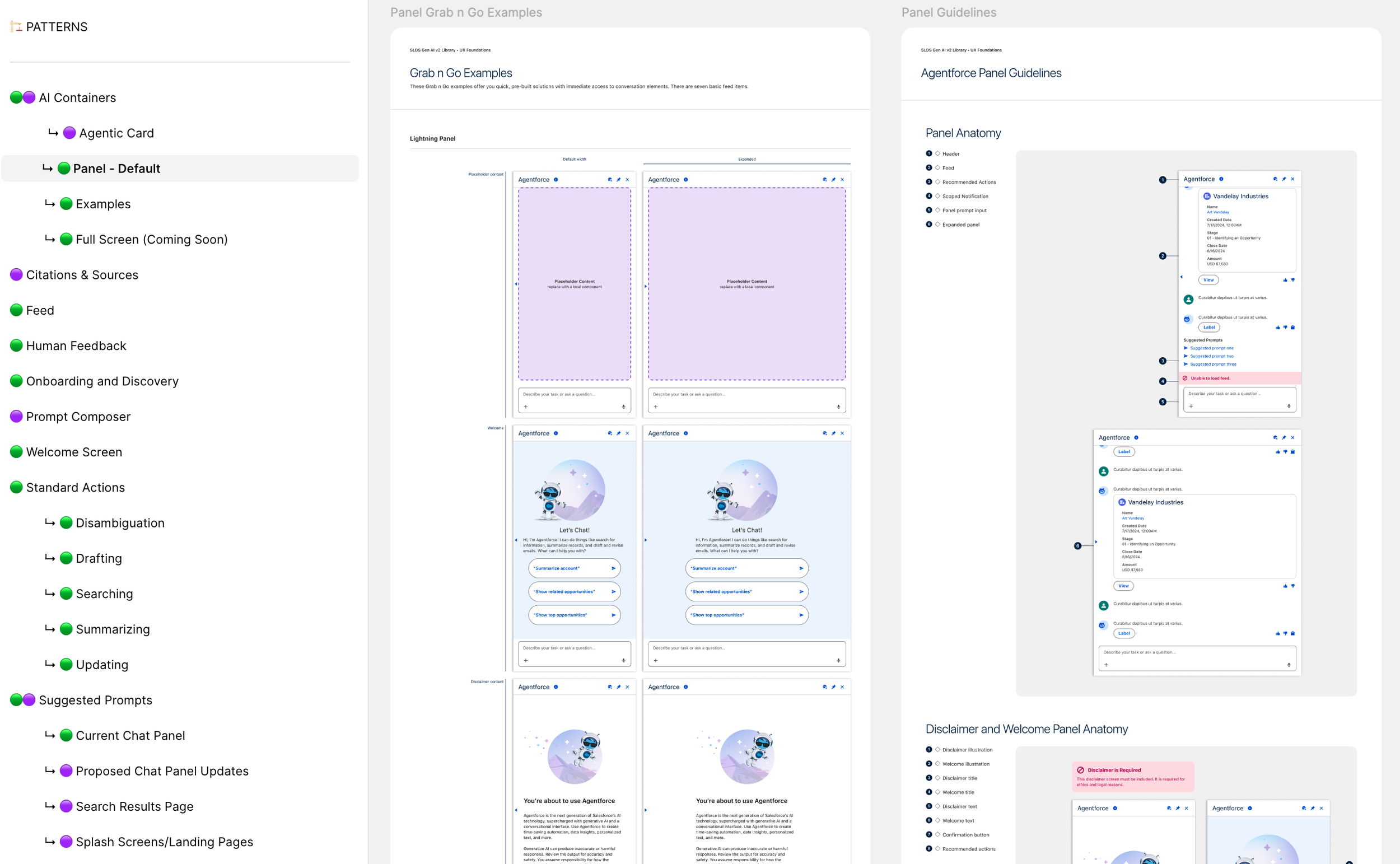 Designed core patterns, including Agentforce Panel, Feedback, and Citations